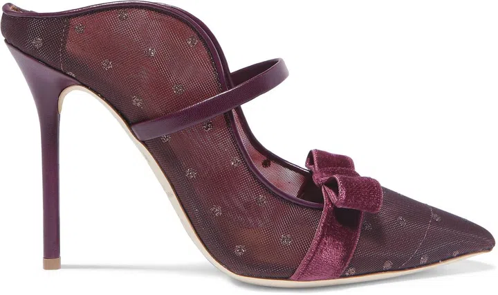Malone Souliers by Roy Luwolt 2019 早春度假系列充满浓郁的 80 年代气息,而这款 “Marguerite” 穆勒高跟鞋采用酒红色网布,缀有同色系圆点亮片,尖鞋头上则饰有天鹅绒蝴蝶结,更添奢华之韵。穆勒鞋的好处在于,穿脱方便,让你在农历新年拜年时,省去不少穿戴烦恼。