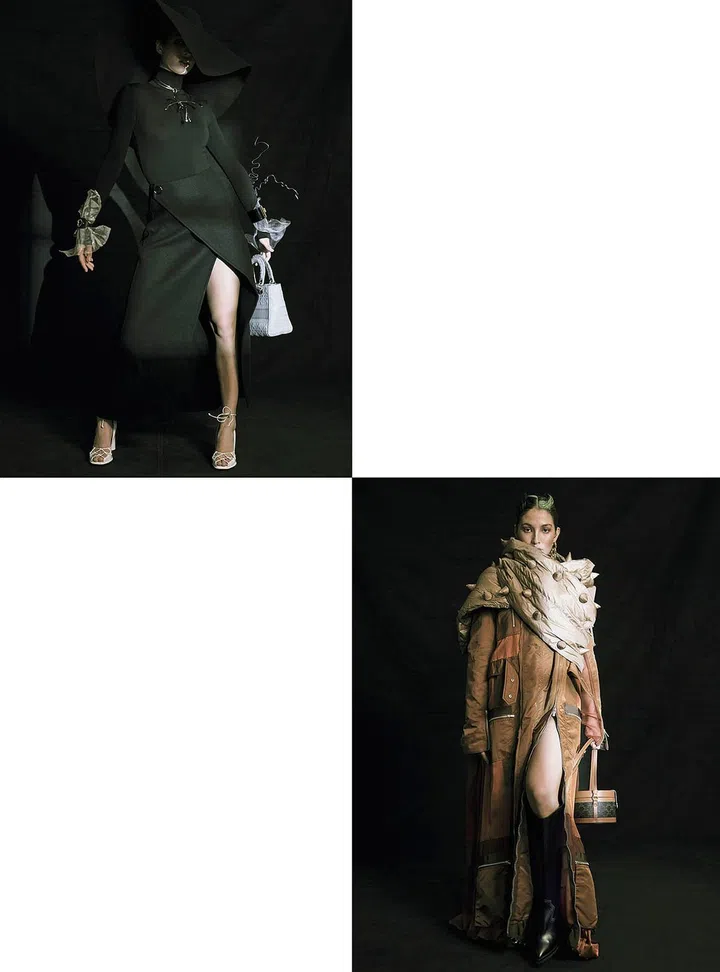 左至右:(模特Lila) 毡帽、丝巾、皮革工作服、皮革手机套(戴在脖子上)、皮包、皮手套、笔记本(On Lila);(模特An An) 皮包(戴在脖子上)、