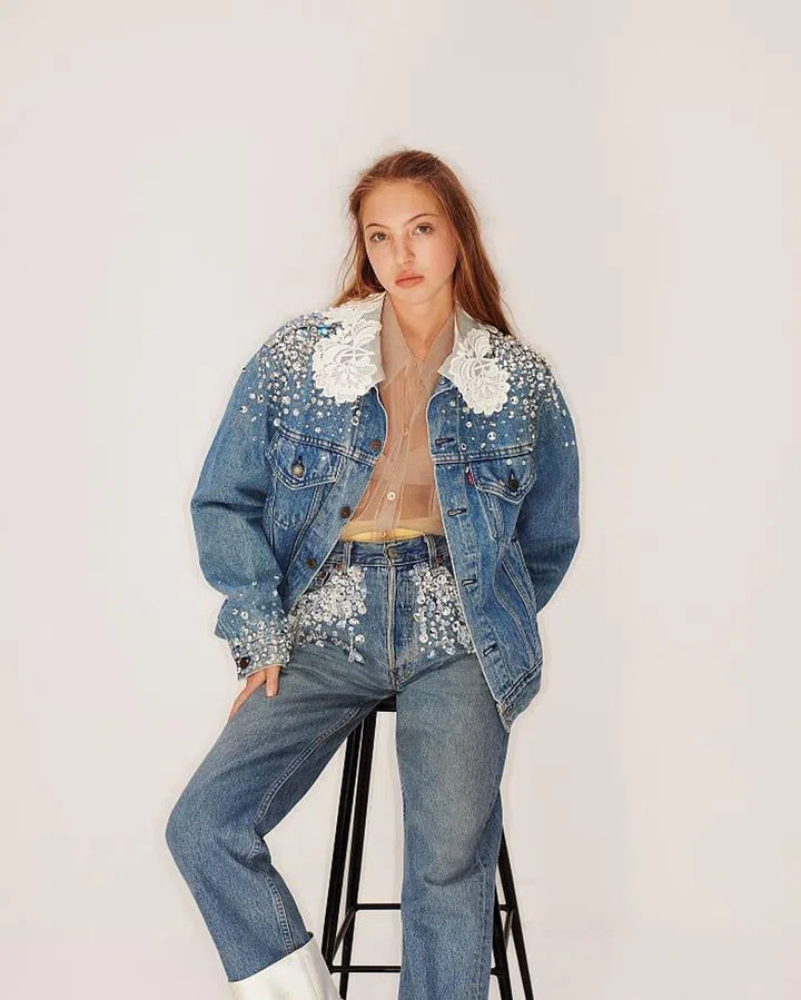 缪缪(Miu Miu) 2020年推出Upcycled by Miu Miu重塑系列,将世界各地搜罗的裙款重制,为衣服带来新生命。这一回,品牌携手Levi’s,为旧日牛仔装赋予新生。今年的合作选择了Levi’s档案中80至90年代的男装501 牛仔裤及牛仔外套,并由Miu Miu加以个性化定制。复古牛仔缀以极具辨识度的Miu Miu水晶、珍珠、花卉、通体人造钻石刺绣,以及装饰艺术风嵌花图案皮革贴饰,出现在外套及裤装上。Miu Miu更在外套中加入灯笼袖设计,完美拿捏了阳刚与柔美之间的时尚态度,而标志性的Levi’s标签也以粉色重释,并加入Miu Miu的品牌商标。