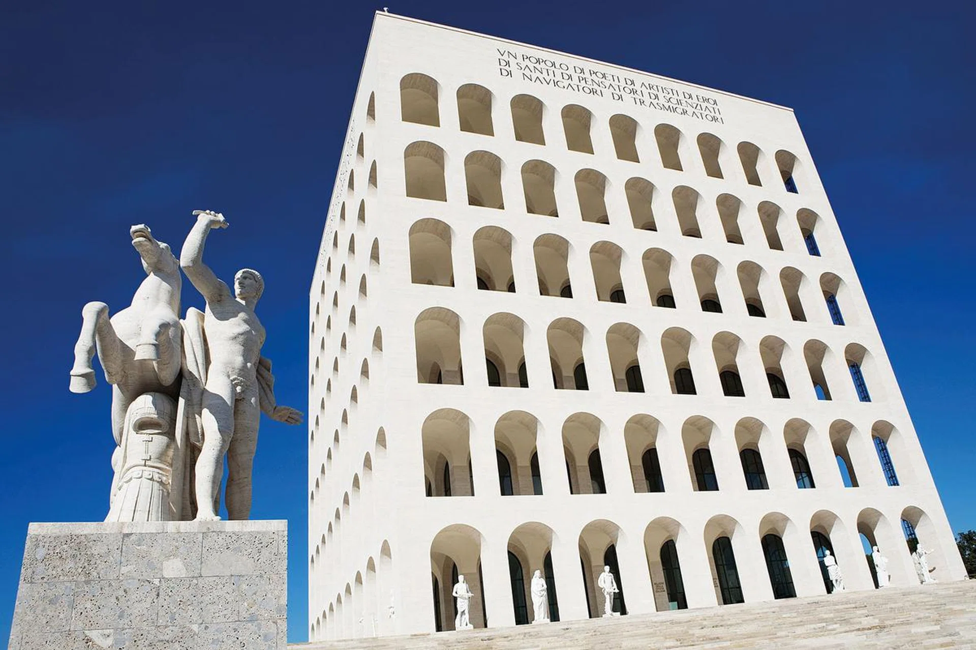 沉寂已久的意大利文化宫(Palazzo della Civilta Italiana)随着Fendi新总部的迁入后开始有了生气,从累赘建筑摇身一变成为奢华总部,这栋古旧建筑总算盼到了春天。建立于1940年的文化宫是为了1942年的世博会而建,但却因为第二次世界大战而中断了预期举行的开幕礼,让这栋坐落在罗马市外围的建筑物顿时被搁置。尘封73年后,Fendi在2013年与意大利政府协议,以15年的租约租下文化馆作品牌总部,除了将各地员工聚首在同一屋檐下之外,更有助于带动罗马的经济,此举一箭双雕。经过18个月的整修后,文化馆在今年十月底以崭新的面貌示人,配合开幕礼,Fendi更与著名艺术家Mario Nanni合作,以建筑物的外墙为屏幕,上演一场名为“Poesia di Luce”的灯光秀,寓意品牌新总部的落成。