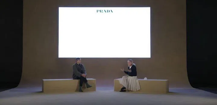 Miuccia Prada 和 Raf Simons 在发布会结束后亲自解答大众的提问。