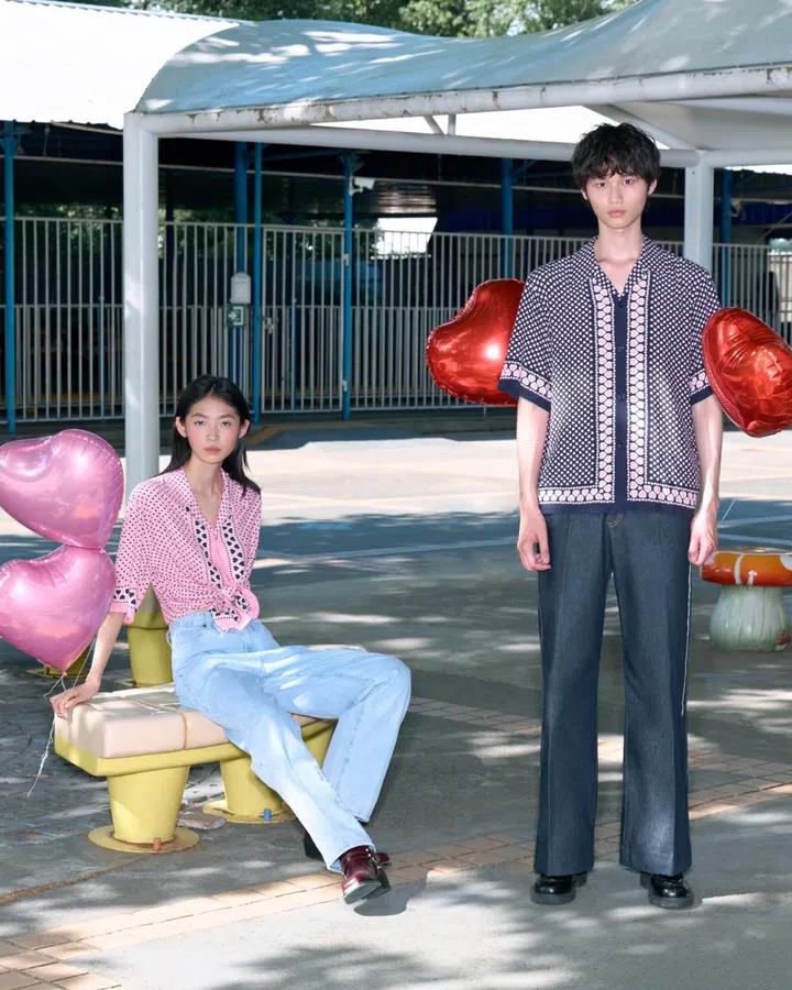 男装系列则以“爱”为主题,重新演绎标志性单品。T 恤和卫衣饰以心形贴饰,彰显简约纯粹的现代风格;流畅线条赋予单品松弛自在的气息,定格怦然心动的瞬间。罗纹毛圈布卫衣以立体压花工艺诠释跳动的心意,缤纷色彩为初秋增添轻快韵律,满溢童趣与爱意,传递爱情最纯粹、真挚的力量。