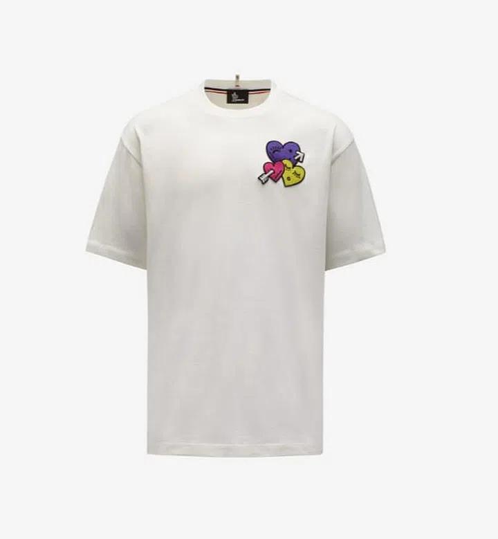 Moncler携手意大利印花品牌Naj-Oleari,推出一系列爱意满满、妙趣盎然的成衣单品,其中这款白色T恤点缀三颗简洁心形图案,简约大气,是平日出门的百搭单品。