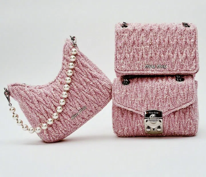Miu Miu 的2021七夕限定系列手袋以“珍珠”为装饰元素,搭配Matelassé 绗缝工艺打造的粗花呢织物面料,采用浪漫甜美的粉色调,增添一抹俏皮可爱风。