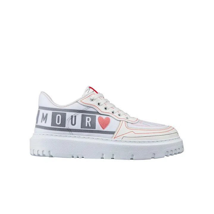 这款Dior Addict运动鞋以白色科技面料制作,以网眼织物包覆,搭配纹理设计,突显白色、黑色和红色 D-Chess 心形图案。鞋履采用轻盈舒适的EVA厚底,鞋身饰以“DIORAMOUR”标志,令造型更加精致。