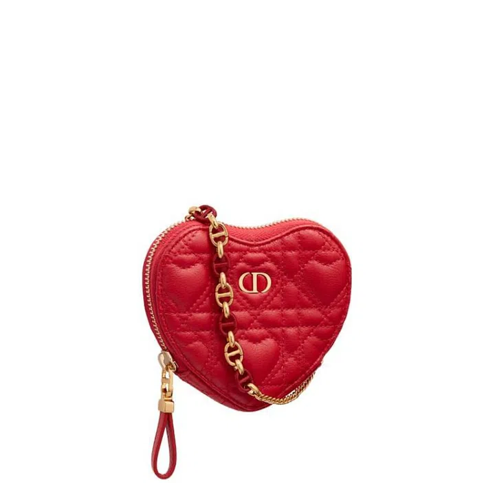 这款Dior Caro心形链条包,采用鲜红色牛皮革,搭配心形图案藤格纹缉面线,为另一半献上爱意!手袋配有可拆卸链条,其珐琅链环细节则能提升格调,可肩背、斜挎或放入手袋中。