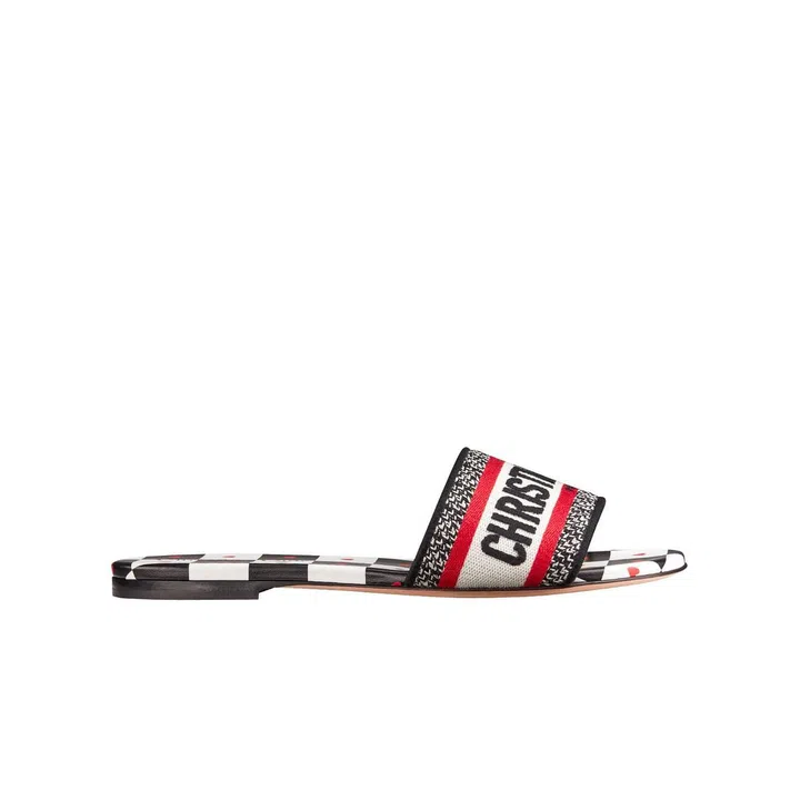 Dior的Dway凉鞋一直是品牌的经典鞋履之一,这款Dway凉拖经过重新诠释,以白色、黑色和红色的 D-Chess 心形图案,别具特色,突显本季的浪漫主题。