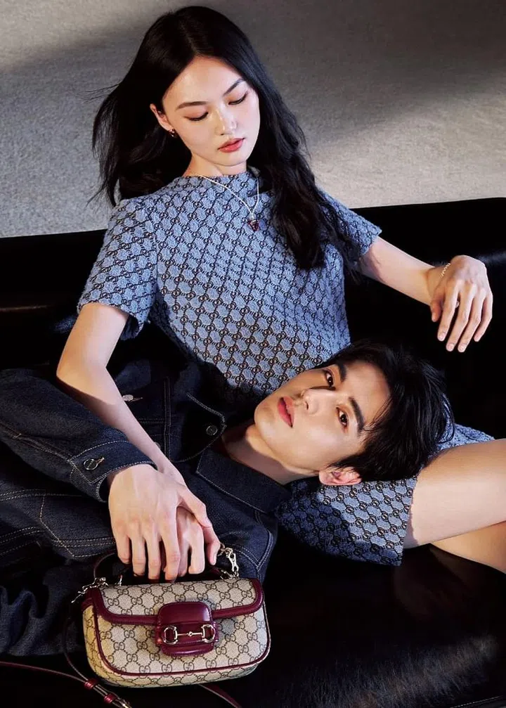 Gucci 创意总监Sabato De Sarno打造的七夕甄选系列形象广告由品牌大使张凌赫与国际超模贺聪共同演绎。本季Horsebit 1955 手袋将经典马衔扣元素与安可拉红色结合,选用米色和深棕色 GG 帆布搭配皮革饰边,呈现精致复古格调。