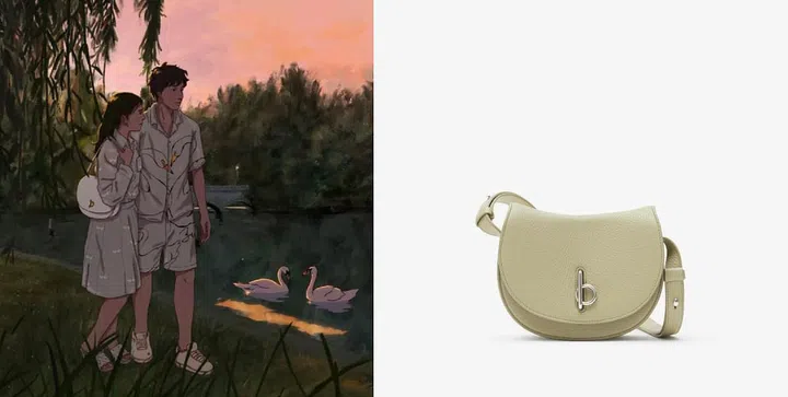 Burberry 2024七夕系列以全新的天鹅主题为核心,在成衣及配饰中添上天鹅情侣形成心形姿态的图案,充满甜蜜氛围。此系列还复刻了品牌经典之作——Rocking Horse手袋,以清新脱俗的皂白色调呈现。Rocking Horse包款的名字来源于摇摆木马,当包放置于平面时,底部设计可使其前后轻微摇晃,生动复现了童年的摇木马游戏体验。