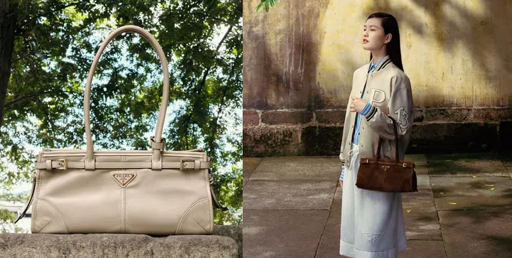 Prada 2024七夕系列广告大片在徽州古村呈坎取景,代言人李现与模特谢欣在古村落中漫步,展现了一种历史与现代交融的浪漫氛围。在手袋方面,Prada Soft Lux系列以烟草棕色麂皮重新演绎,呈现出温润细腻的触感,散发复古典雅的气质。此外,品牌还推出了油蜡皮材质版本,可选白色或铃兰粉色,并推荐搭配彩色挂坠或丝巾等饰品,为包袋增添俏丽感。