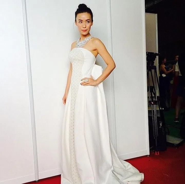 林慧玲这身着Max Mara干练利落的白色礼服亮相《红星大奖: 影聚响宴3》,造型的翻领设计尽显摩登女性的端庄和美丽。