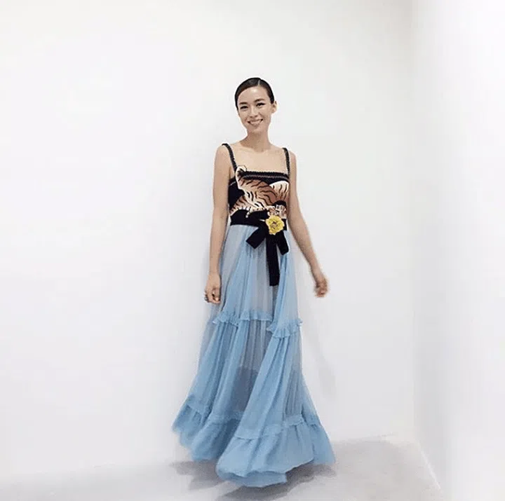 时尚品牌Giambattista Valli以其精美的高定服装为名,林慧玲2014年的红毯衣装就出自这个高定品牌,漂亮高贵提的花裙,以夸张伞状的Peplum设计搭配精致的抹胸上身,穿出优雅女人味。