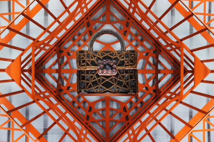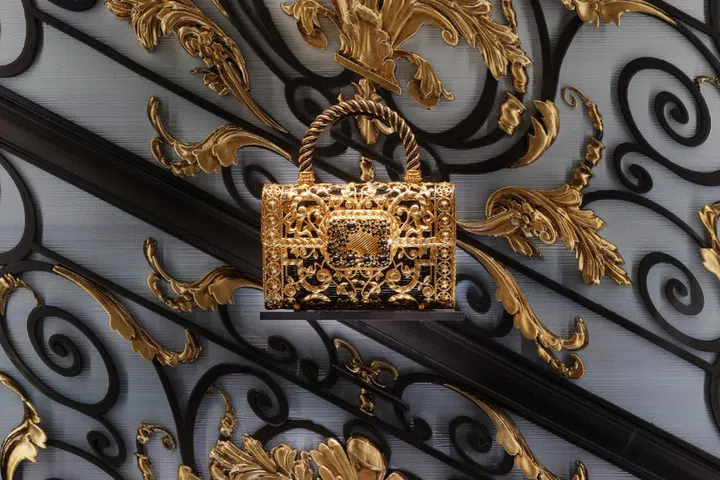 Roger Vivier在圣奥诺雷街精品店的大厅内,以银色内衬墙壁打造出仿若电影场景的展示空间。Piece Unique列臻品在几何构造的斜面框架下精致亮相,展现18与19世纪巴黎地标的独特纹理。这些建筑承载着非凡的象征意义,融合匠心独运的设计理念,尽显法式美学与永恒经典的象征。