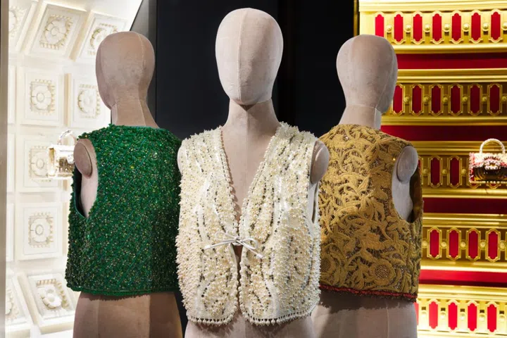 此外,三款华丽马甲亦惊艳亮相,进一步延续Piece Unique系列与Roger Vivier高级工坊之间的艺术对话。这些马甲与手袋相互呼应,分别选用乳白色、祖母绿色及金色调,以品牌工坊的精湛技艺打造出世代相传的时尚臻品。其灵感来源于巴黎经典建筑,将法式建筑的独特神韵升华为艺术杰作,诠释隽永不朽的匠心精神。