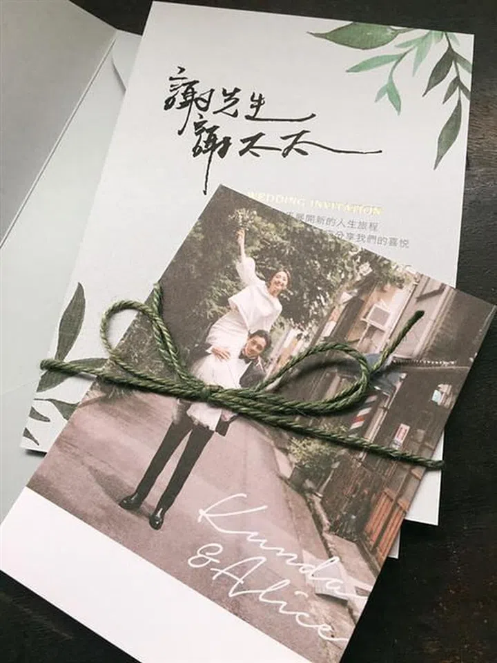 时尚浪漫小清新!谢坤达、柯佳嬿赴京都拍婚纱照台湾艺人谢坤达(Kun Da)和柯佳嬿(Alice Ko)交往五年,于在2017年底注册结婚。小两口特地飞往日本京都拍摄婚纱照,张张充满古典优雅的气息,充满幸福喜悦。文 / Hayley Zhang Yujie / 5 Sep 2018fashion, Kyoto, lifestyle, taiwan, WeddingShare this article台湾艺人柯佳嬿与坤达在2012年因拍偶像剧《我们发财了》相识相爱,爱情长跑五年后,终于在2017年底注册结婚,有情人终成眷属。两人于隔年9月15日补办婚宴,邀请约35桌宴请圈内外亲朋好友。两人各自忙碌,但仍在百忙之中,抽空飞往京都拍摄婚纱照。选择京都,别有意义,因这里是两人第一次旅游的地点,借由此次拍摄重游古地,同时重温满满的幸福回忆。柯佳嬿此次选择的3套婚纱都出自台湾品牌MS IDEAS Wedding,其中一套波希米亚风格的婚纱,以细腻的法国蕾丝,通过层层叠叠的方式打造精致唯美的雪纺蛋糕裙,做工耗资300小时完成。设计亮点在腰间上的马甲腰封,不仅能修饰身材,也将新娘古典优雅的女人味释放而出。小两口的婚纱照十分特别,不走常见的奢华风格,反而走的是小清新怀旧风格,张张充满古典优雅的气息,获得网友大赞:原来这就是简单的幸福。 谢坤达与柯佳嬿的喜帖。婚礼的“森林风喜帖”也是新人的特别设计,帖子上印着大大的“谢先生、谢太太”的字样,并将婚纱小卡片以绿色麻绳捆绑在一起。fashion, Kyoto, lifestyle, taiwan, WeddingShare this article