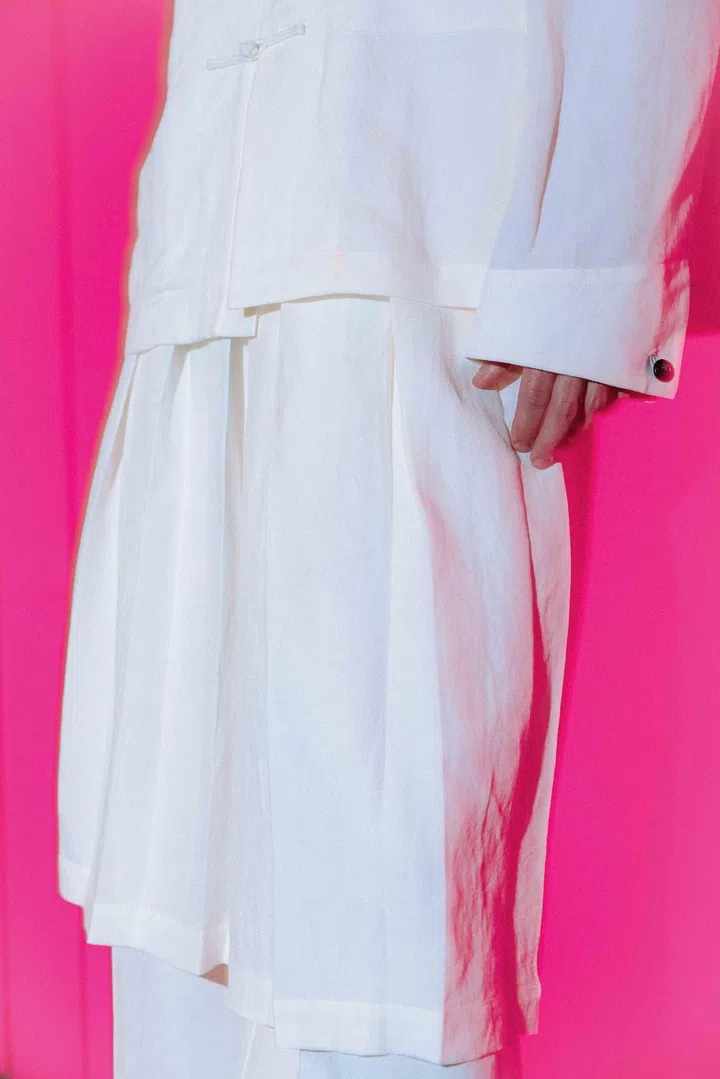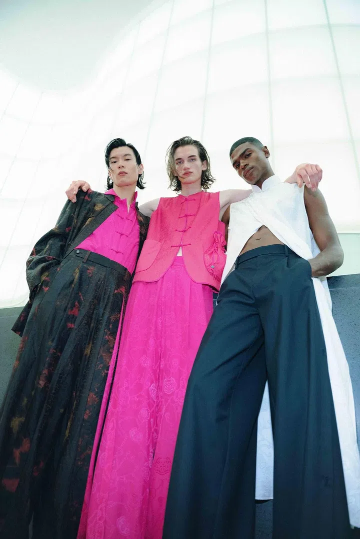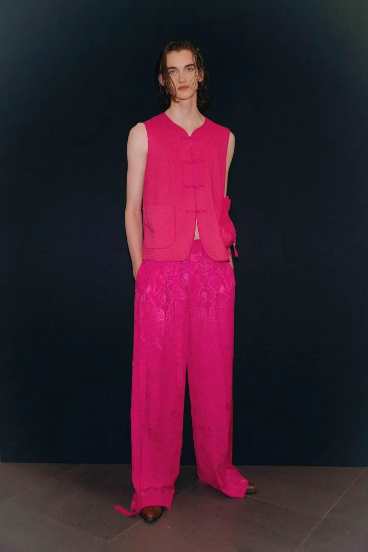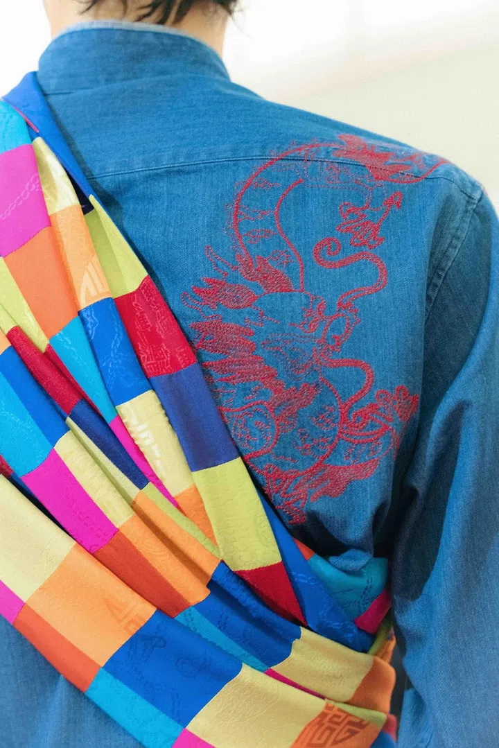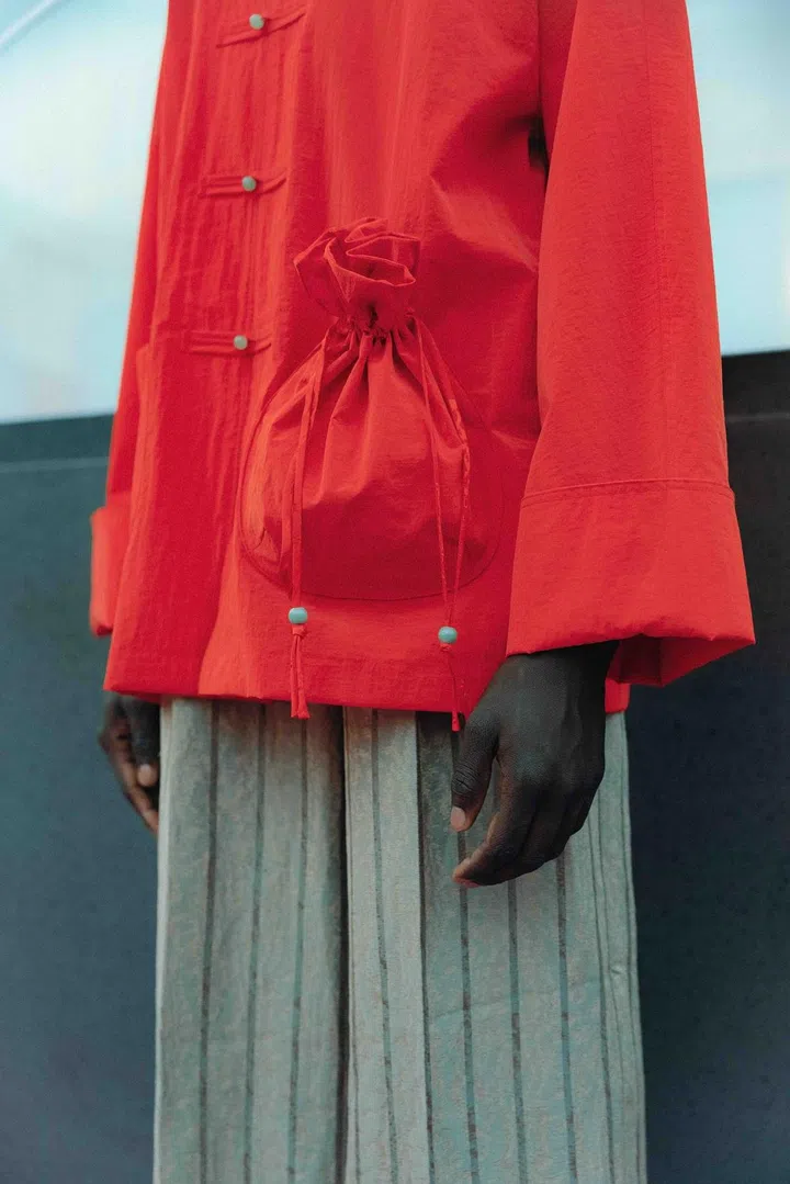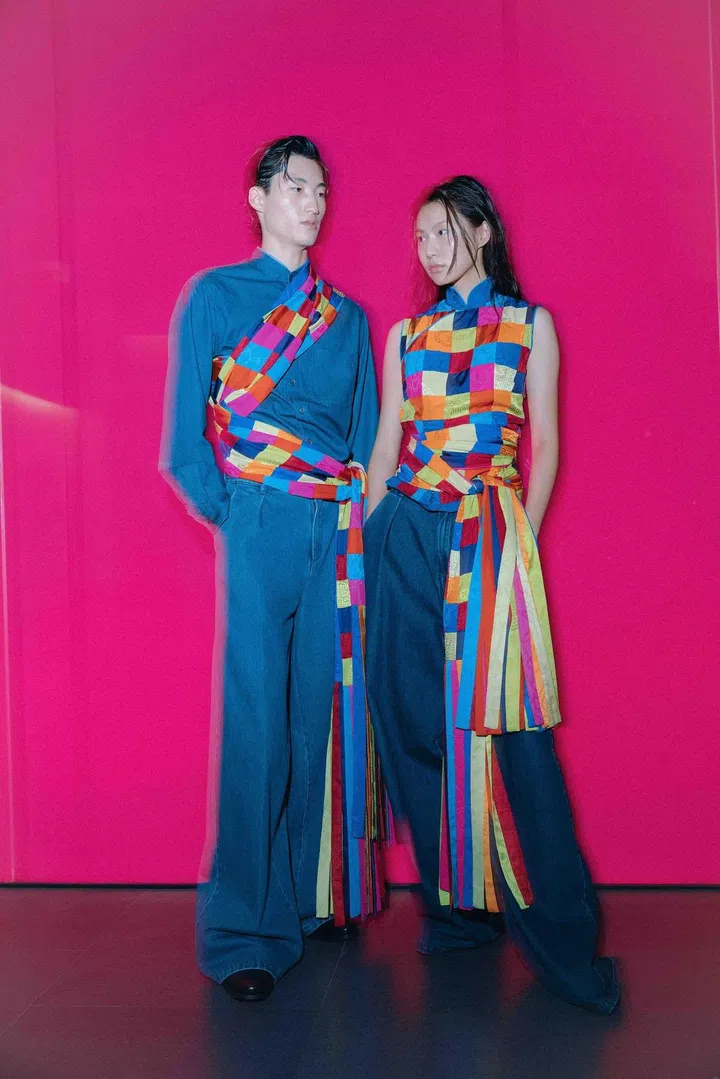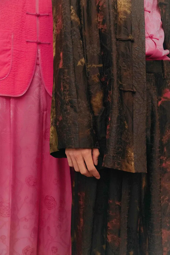 上海滩Shanghai Tang作为传承中国传统手工艺的代表之一,这次采用了一种中国古老的手工面料—— “香云纱”。这种纱织品的制作过程相当繁复,包括浸泡、晾干、密封、煮熬、水洗等多个步骤,用精细的材料展示品牌对工艺的追求。此外,品牌还使用了经过塔克褶、砂洗、石洗等工艺处理的天然布料,以自然材质独有的手工质感传达系列的灵感核心。同时,通过融入品牌标志性的荧光色彩和撞色拼接等设计手法,为中式时尚注入一抹现代的时尚气息。