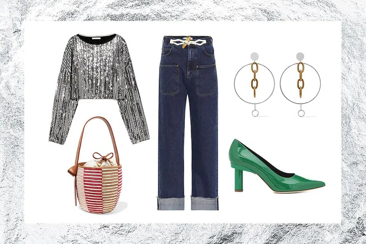 不想穿得太抢眼,不需要从头到脚都穿上银色,我们建议挑一件长袖银色上衣,白天和晚上都合适。闪闪发亮很欢庆,也很适合圣诞佳节。周末可搭配稻草提包,晚上可搭配牛仔裤。