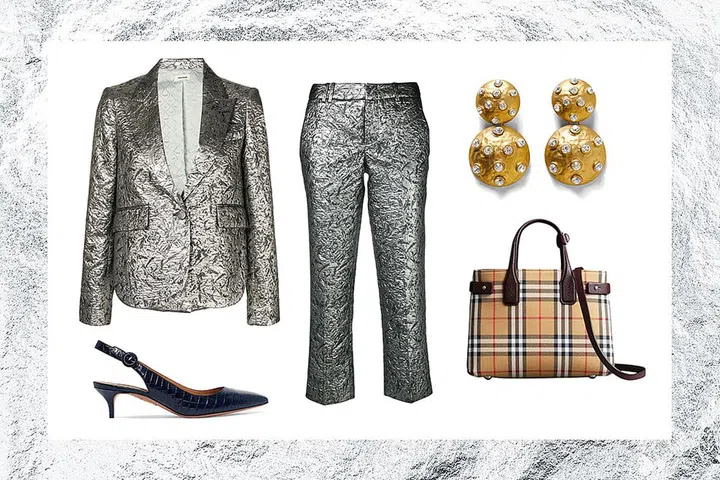 想让自己更大胆,可在上班服里加入银色系列。我们推荐带有微褶质感的西装外套与长裤,增添趣味性。可以一起穿,也可分开穿用。