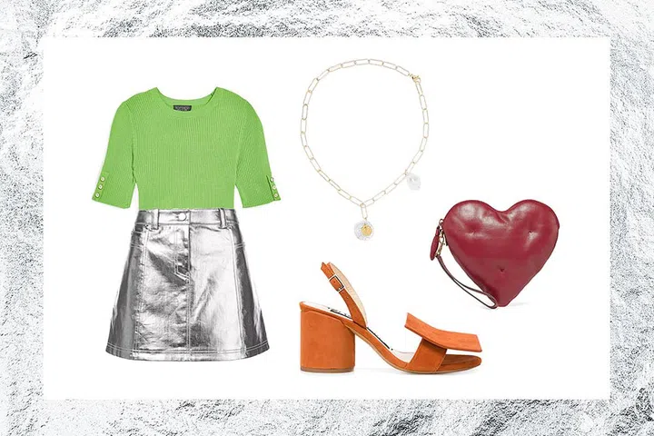 休闲约会想穿上银色,可选择这款简单的银光短裙,比较温和,但同样亮眼时尚。搭配亮丽颜色如青色、红色、橙色,让对方留下深刻印象。