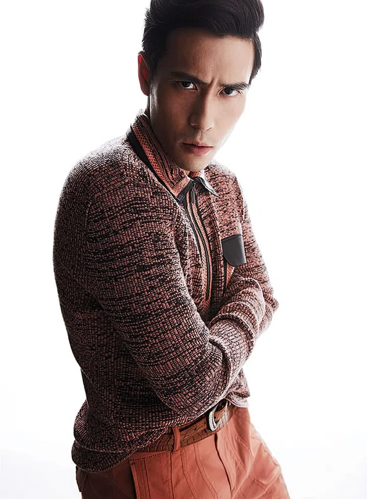 谢宏辉:棉质针织上衣、棉布裤、皮带/BOTTEGA VENETA