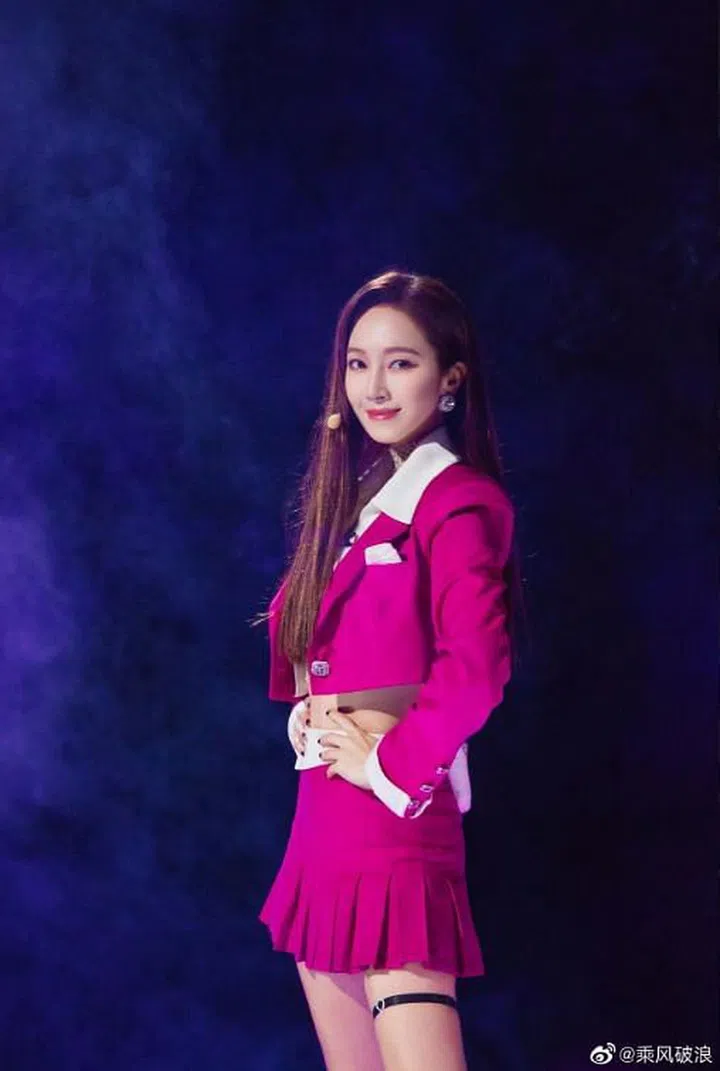 第一场公开演出上,郑秀妍身穿Nana Jacqueline的桃粉色短夹克与迷你裙,内搭Ann Teano短款背心,新颖俏皮,在舞台上特别醒目。