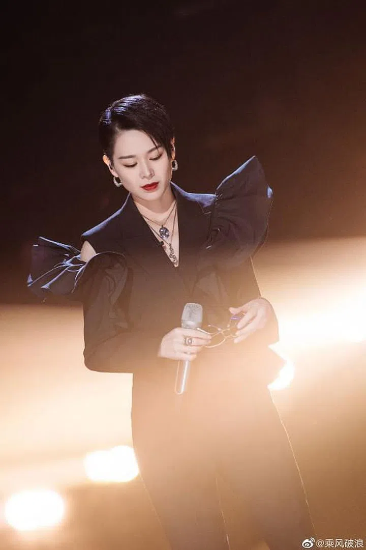 带来一曲《岁月如歌》的胡杏儿,不禁让人想起《冲上云霄》的美好回忆。她身穿干练大方的Alexander McQueen短款褶饰夹克与烟管裤,充满飒气。