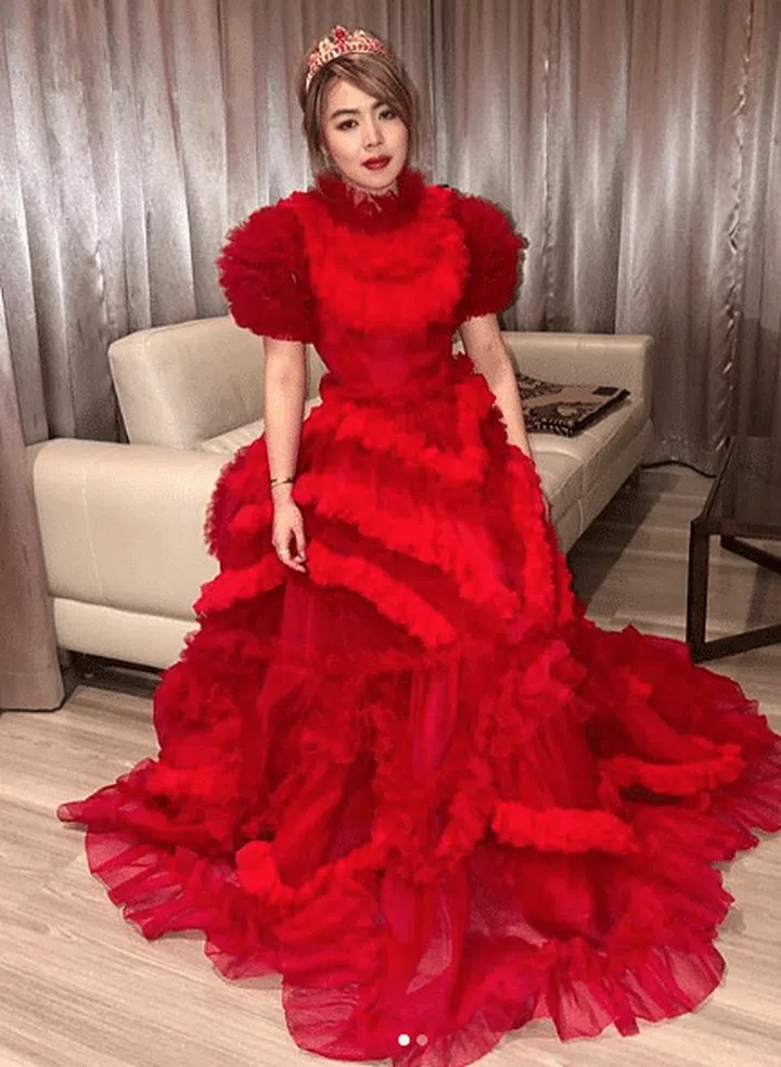 Chole 穿着一身红色Dolce & Gabbana 晚装出席今年的在新加坡的Monaco Ball。
