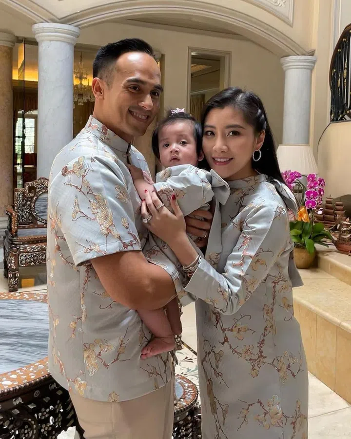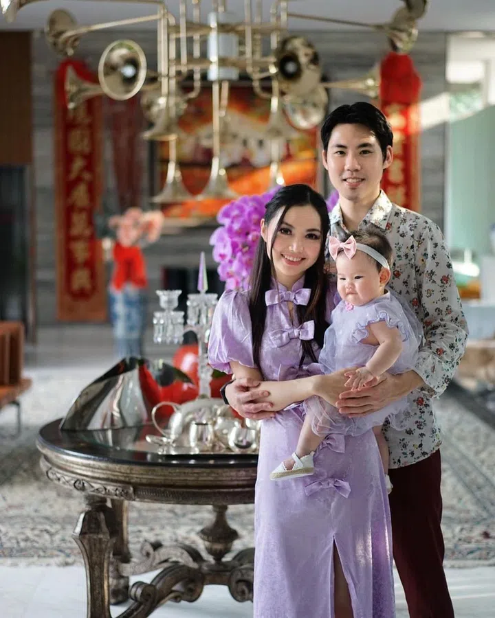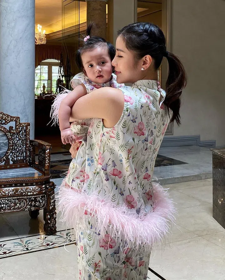 不知不觉,Chryseis的宝贝千金已经7个月大了!这个新年,母女俩一同穿上Varithorn Boutique的亲自装,印花套装上缀着一圈羽毛细节,活泼又灵动。