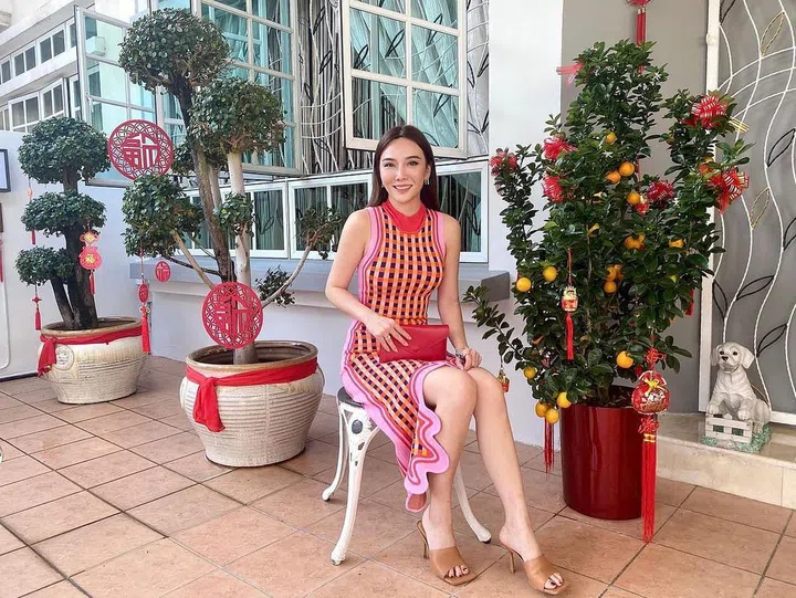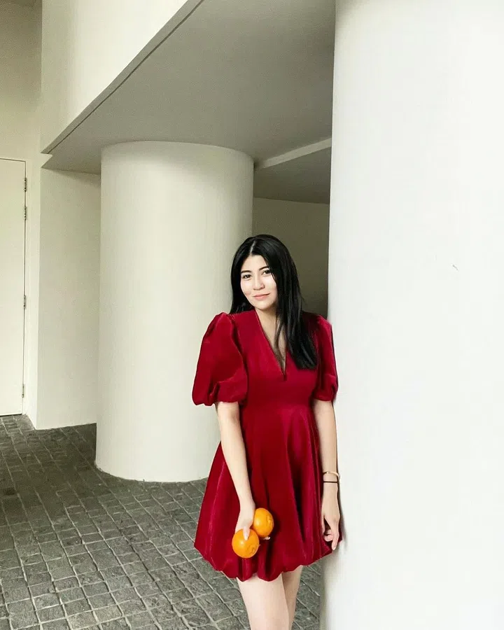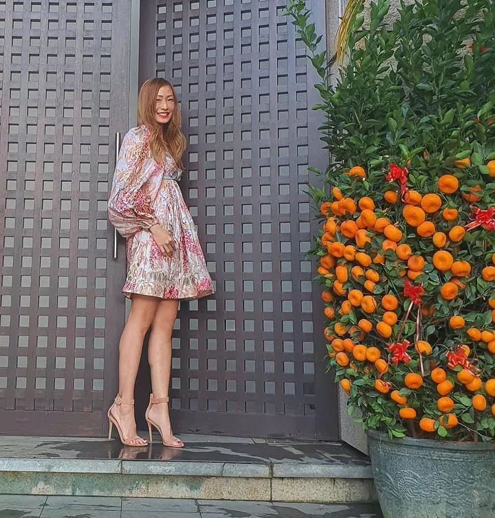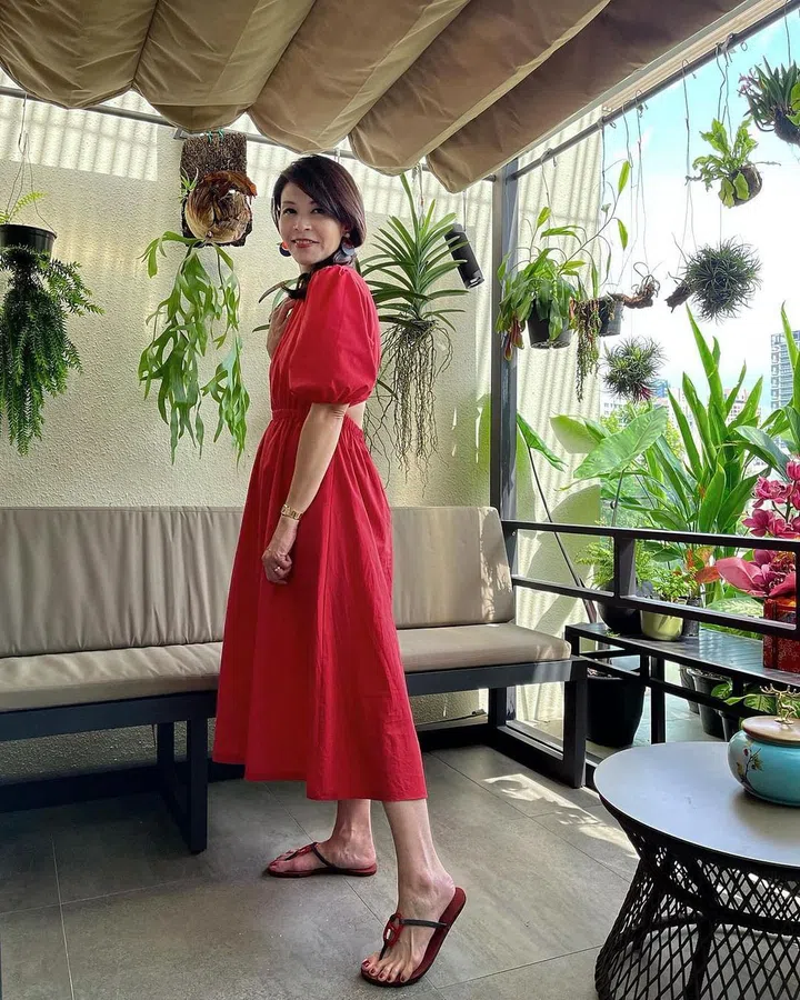 本地品牌Bynd Artisan创办人之一的Winnie Chan,在农历新年也不忘支持本地品牌,她身穿本地服饰品牌Our Second Nature的红色露背连衣裙,展现优雅迷人的姿态。
