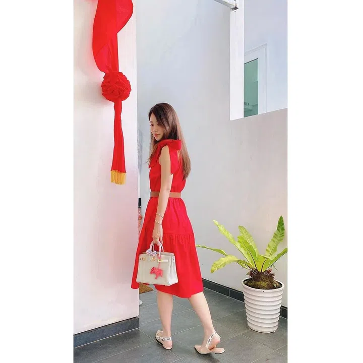 本地整形医生Kellyn Shiau以一身红彤彤的连衣裙,配上Dior J'Adior的露跟芭蕾平底鞋及奶白色的Hermes Birkin手袋,绽放俏丽光彩。