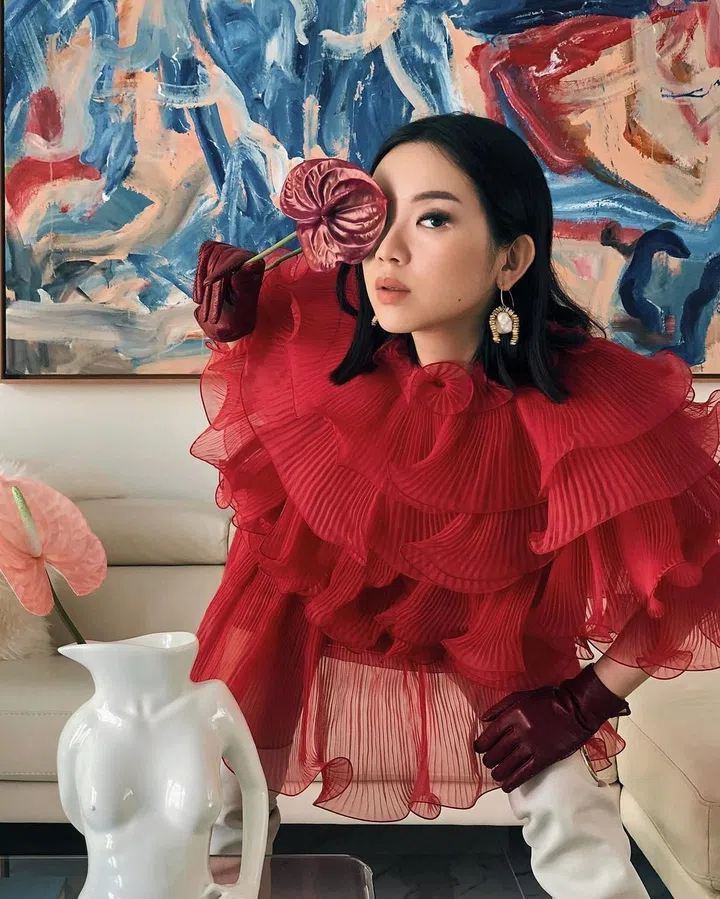 本地时尚博主Willabelle Ong的新年造型,绝对是时尚度满分,她以层次感十足的Alberta Ferretti 红色连衣裙,搭配Salvatore Ferragamo的白色长靴,在家中也能拍出高水准的时尚组图。