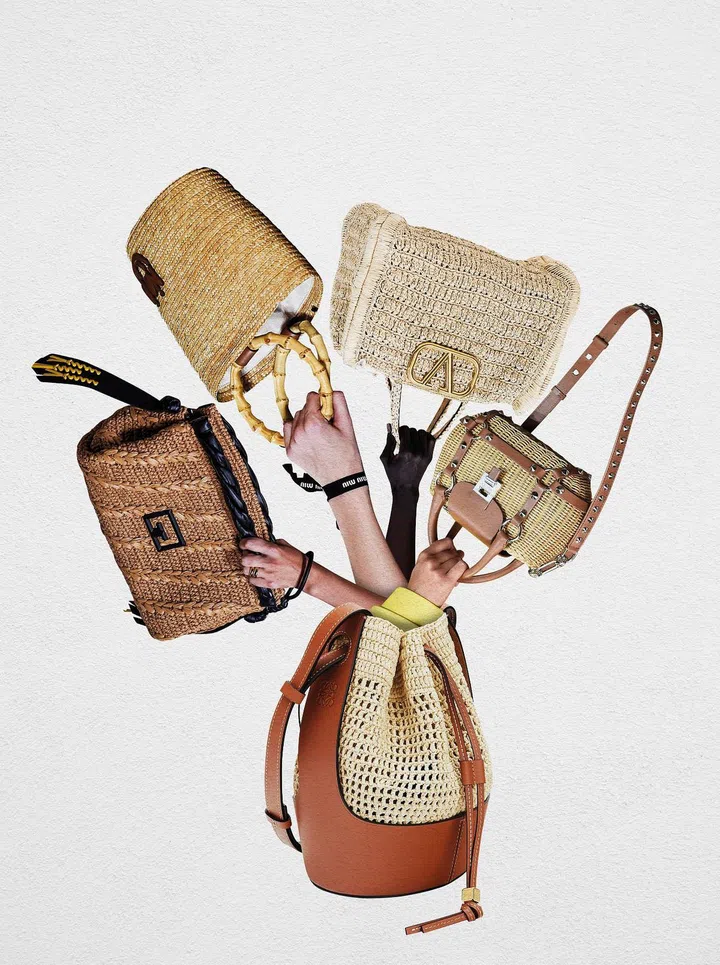简单的编织包是夏季不可缺少的经典款式,不退流行外,且容易搭配。本季天桥上依然充满各式各样的草编包,为炎炎夏日造型做好准备。Valentino的秀场上,超大号草编手提包上缀有V Sling标志配上清爽的连身裙;Celine也推出一系列酒椰草系列的包袋,充满设计师Hedi Slimane的复古调调;Prada和 Miu Miu也加入不少酒椰草的元素,搭配尼龙或牛皮材质,衬托出美感;Loewe最新推出的Balloon手袋也采用皮革包裹的酒椰纤维,造型独特。最后,Michael Kors和Dolce&Gabanna的立体式草编包,相信会获得不少包迷们的喜爱。