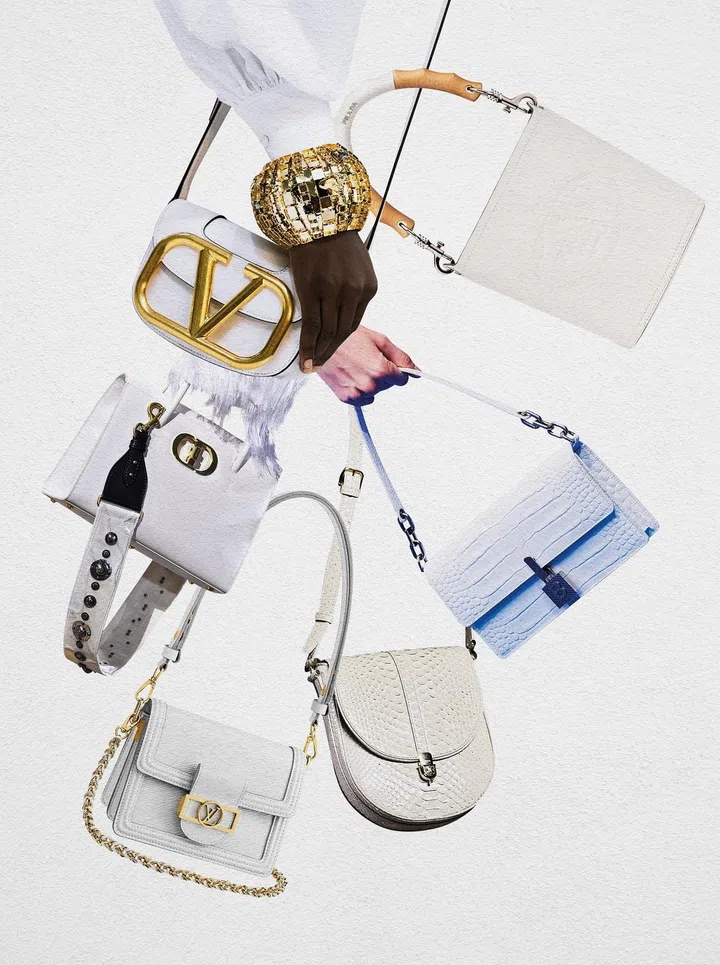 今年春夏,离不开唯美的白色调。在常见的包包颜色里面,白色无疑是很经典、又最优雅的选择,看起来很纯净又奢华。在Louis Vuitton 2020年春夏广告大片中,可见本季主打单品之一是一款全白色的迷你Dauphine链袋翻盖包。不仅如此,Valentino秀场上发布的Supervee及VSling手袋也染上了雪白的颜色,精致无比。另外,Celine的稀有皮革打包袋、Dior的方形手提包、Balenciaga的复古腋下包及Prada的水桶包,都以白色格调呈现,透过不同包型与材质,尽显各个品牌的独特魅力。