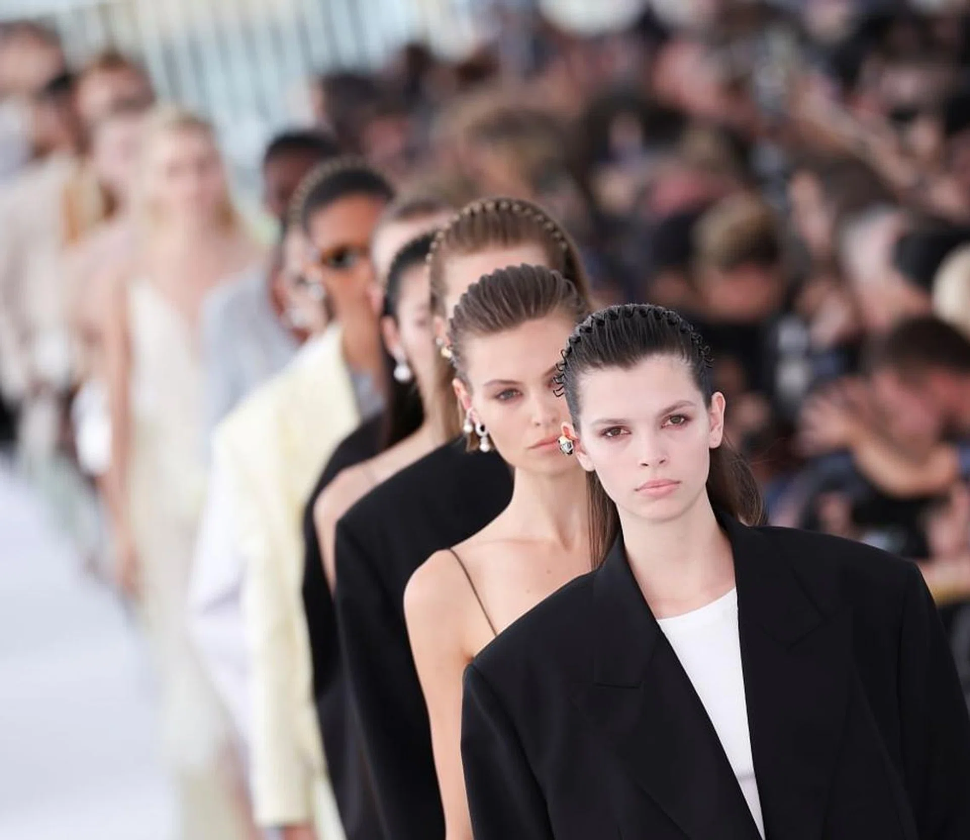纵观2024春夏系列,时尚的焦点不仅停留在Y2K风潮上,许多时尚设计师似乎将目光投向80年代,特别突出的是肩部设计,呈现出更为宽松的规格。超大剪裁意味着故意放大服装的版型,使其呈现出宽松、宏大的效果。40年前,夸张肩部设计赋予女装一种自信、强大的美学。许多女性将其视为解放和职业自信的象征;今季也可见不同品牌使用超大剪裁来展示他们对自由、宽松风格的诠释。