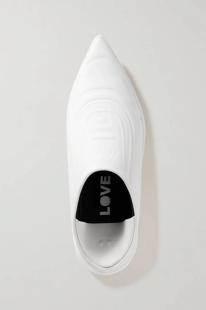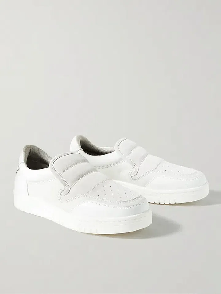 Acne Studios Buller 套穿式运动鞋在鞋舌衬垫下方采用松紧带设计,穿起来舒适稳固。鞋跟饰有徽标印记,采用皮革和绒面革拼接而成,打造别具一格的白色鞋履。