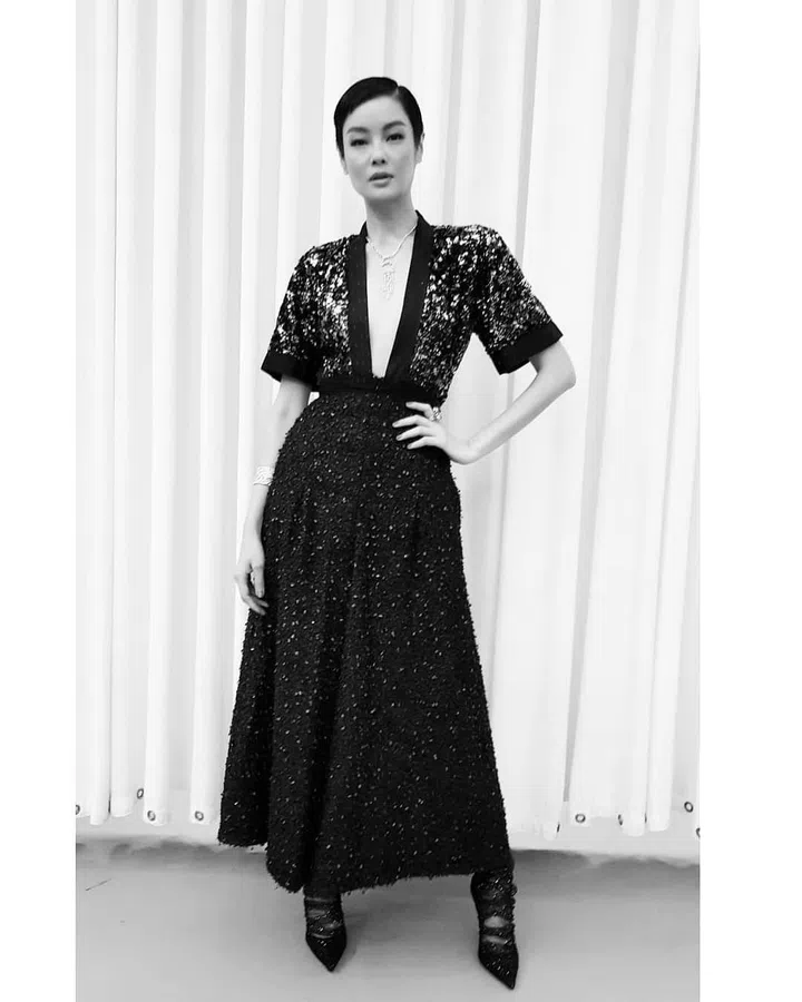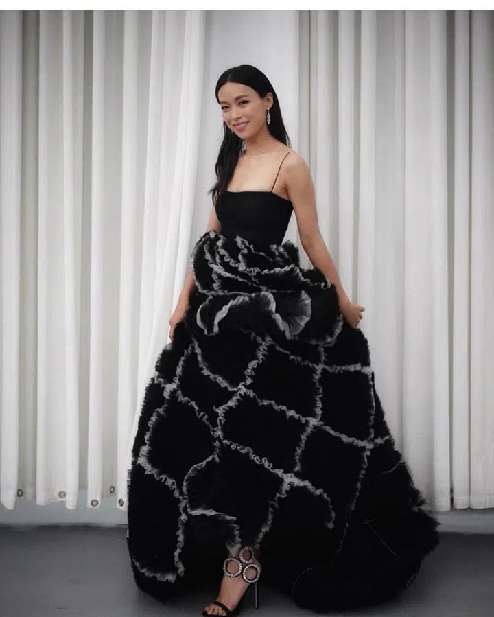 修长的Alex Perry黑色晚装突显刘子绚的身材与高度,更吸引人的是一对长长的蝴蝶袖,为原本沉闷的小黑裙增添戏剧感。此外,还有价值200万元的Tiffany & Co.珠宝首饰。