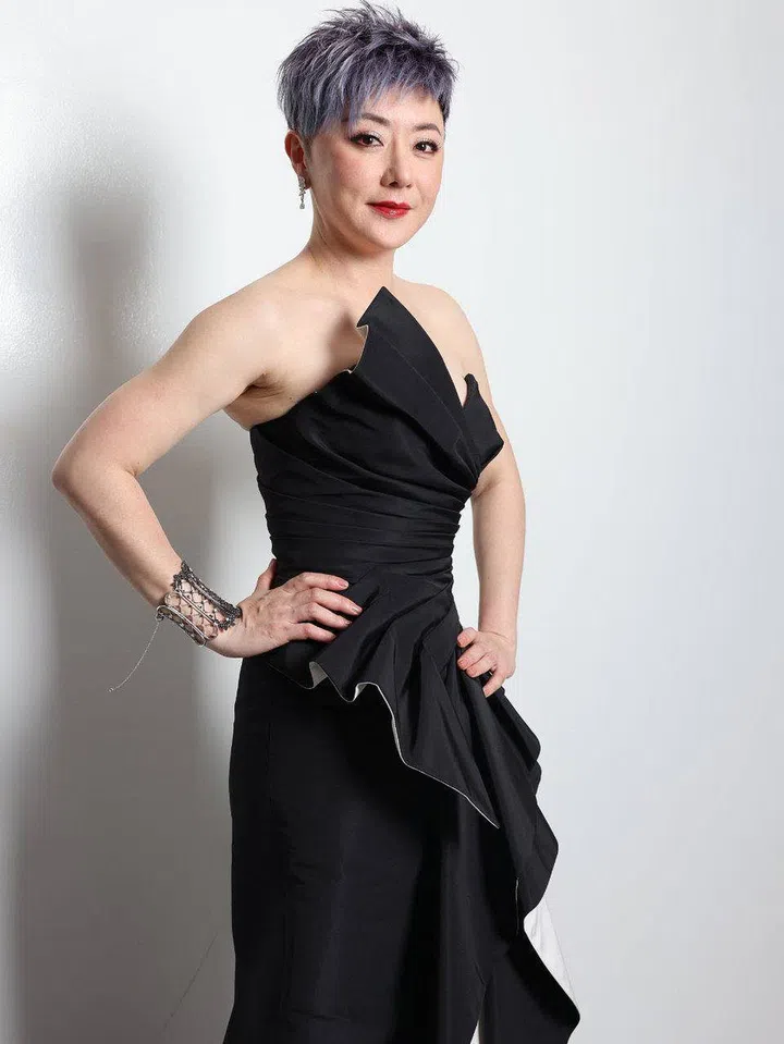 权怡凤以一袭风格独特的Rubin Singer黑色礼服亮相,上身的皱褶设计增加层次与立体感,搭配利落短发,诠释摩登女性的干练潇洒。