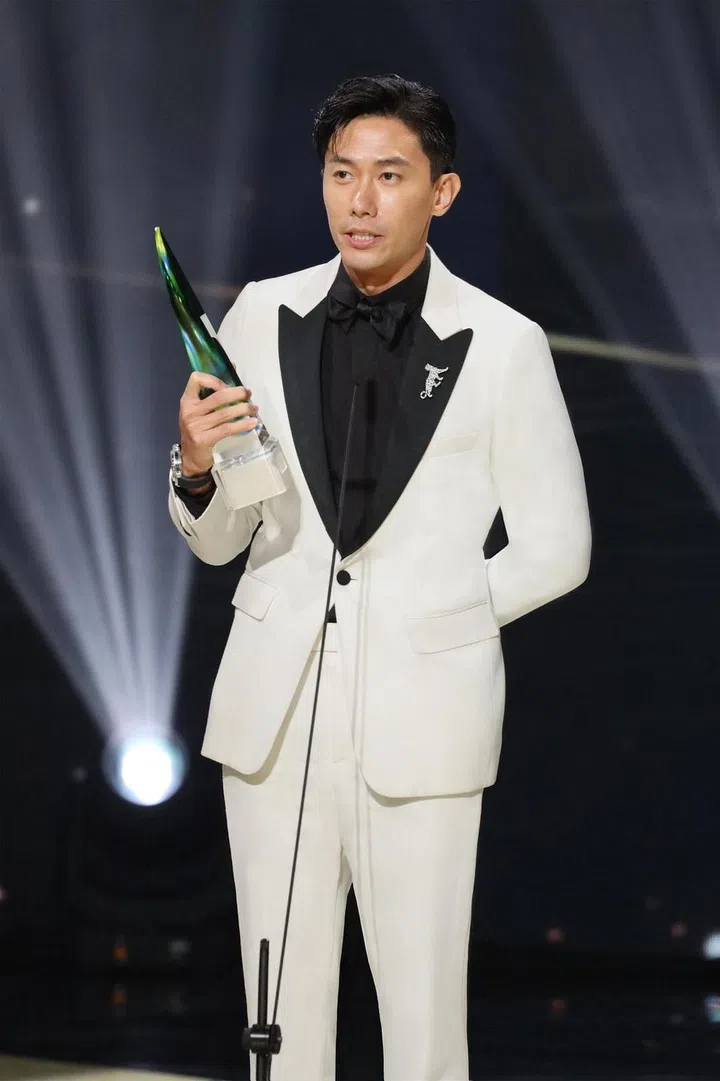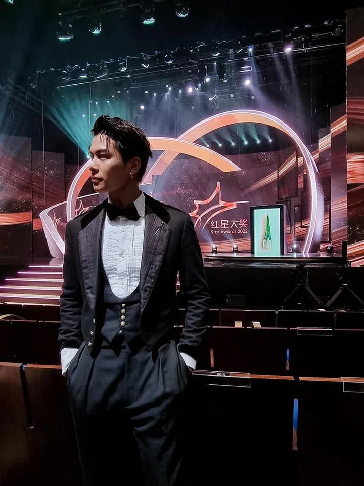 6届《红星》视帝陈汉玮除了演技精湛,对服饰设计同样眼光独到。今年,他也将为《红星大奖》担任设计师一角,为周崇庆、郑各评和洪慧芳设计服饰。当晚,他则身穿笔挺的黑色西装,风度翩翩。