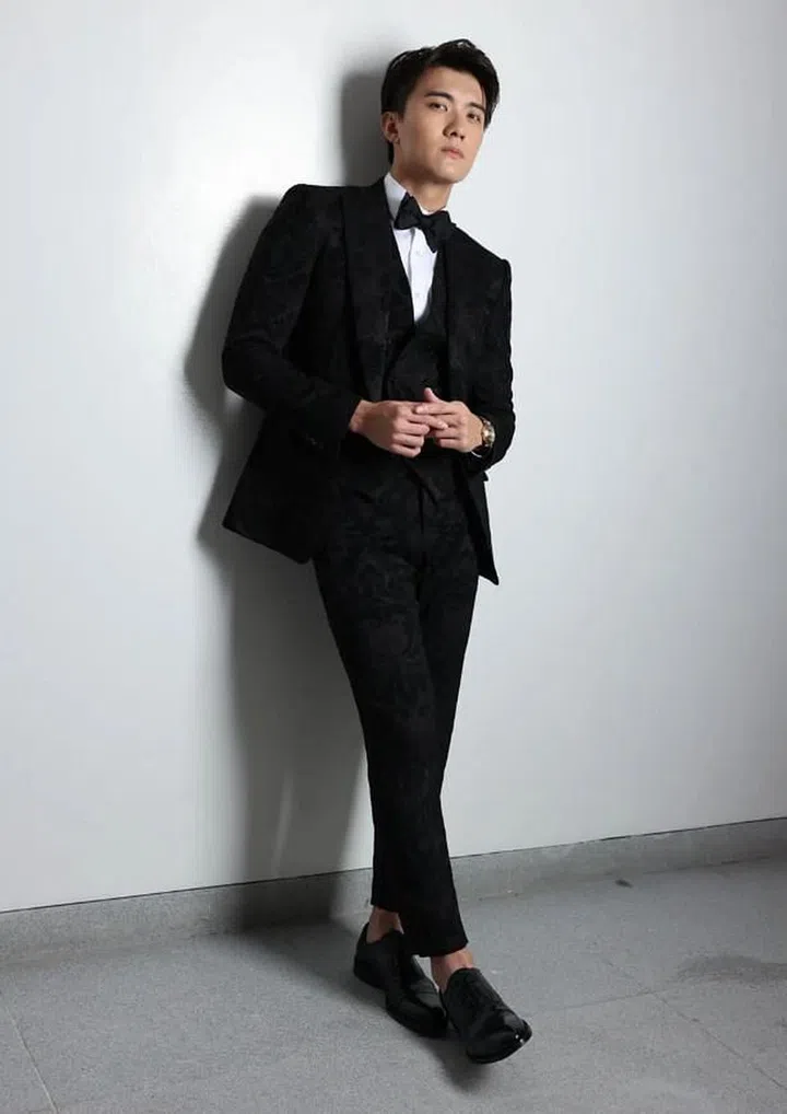 入行短短一两年就入围最佳男配角的张哲通,身穿换Dolce & Gabbana的三件式丝绒西装,黑色西服上以精致的复古印花图纹,展现内敛低调之风。