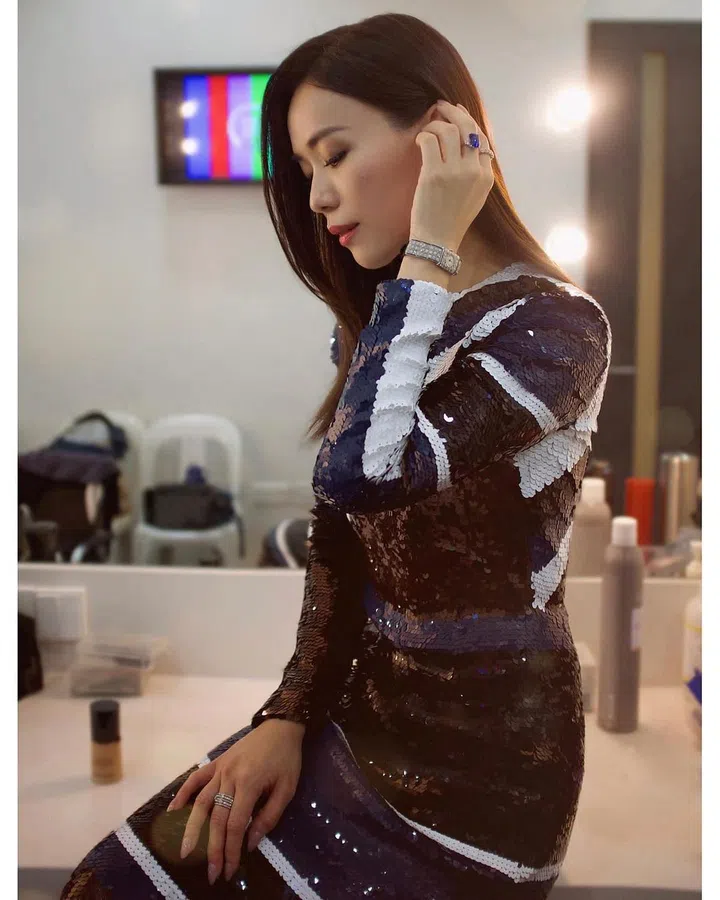 去年宣布订婚喜讯的林慧玲,今晚以一身缀满亮片礼服亮相,极具个性魅力,展现时尚美感。