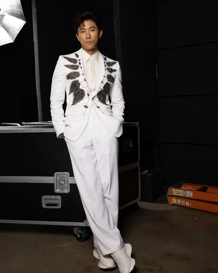 陈泂江这一身红毯造型来自Alexander McQueen 2023春夏系列,极具设计感的正装缀以细腻的刺绣细节,体现出其独特的品味和穿衣风格。
