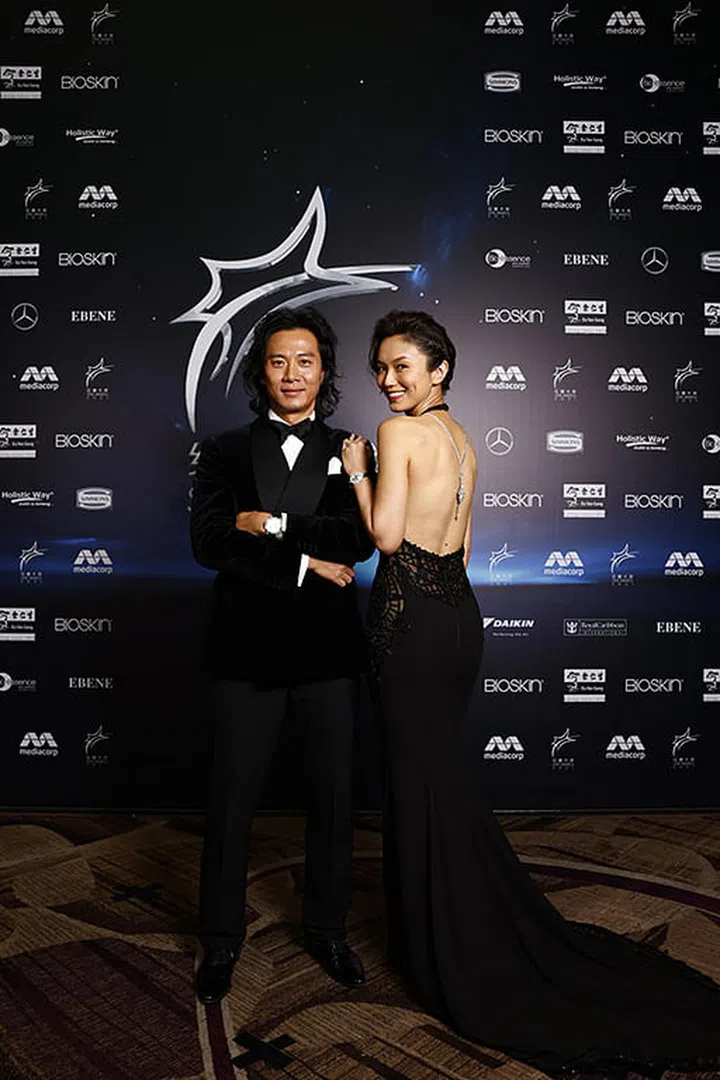 戚玉武以《我的女侠罗明依》入围最佳男主角,他身着Ralph Lauren西装,在老婆白薇秀的陪伴下,亮丽登场。白薇秀则身穿Berta修身露背晚礼服,佩戴Harry Winston高级珠宝,大方秀出较好身段,性感中不失高雅。