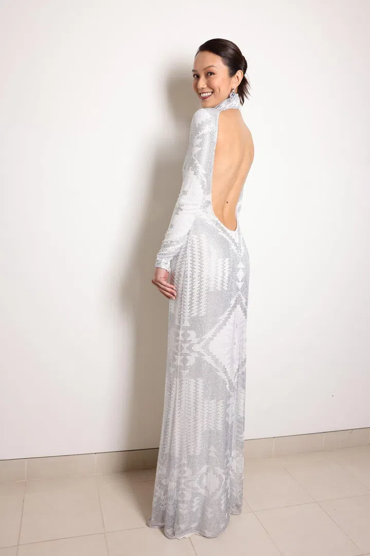首次获得“十大最受欢迎女艺人”的黄暄婷以一袭Bottega Veneta的红色亮片修身晚礼服华丽现身,高领长袖与背面的夸张露背形成鲜明对比,举手投足间流露出精致女人味。
