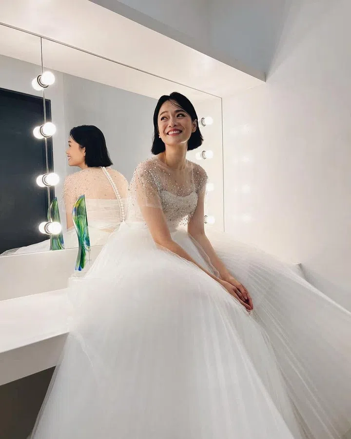 权怡凤以一袭风格独特的Rubin Singer黑色礼服亮相,上身的皱褶设计增加层次与立体感,搭配利落短发,诠释摩登女性的干练潇洒。
