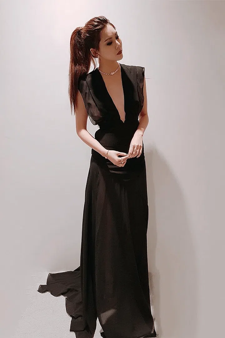 黄思恬选择以Lanvin 2018春夏系列黑礼服出席去年红星大奖,开到肚脐的深V领及透视的薄纱材质,尺度不小。