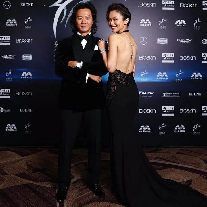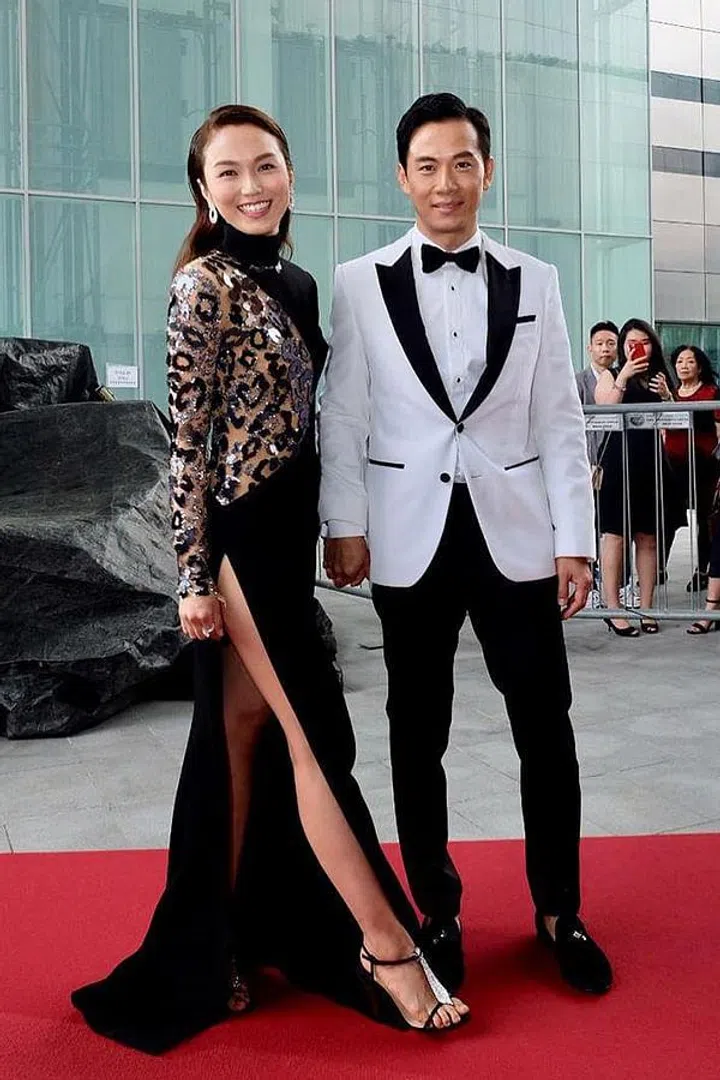 范文芳与李铭顺这对夫妻档,于2010年凭主持的《芳心有李》夺下“最高收视率综艺节目”奖。她选择以Hermes低胸连衣裙外罩件白西装外套,时而绅士、时而性感。