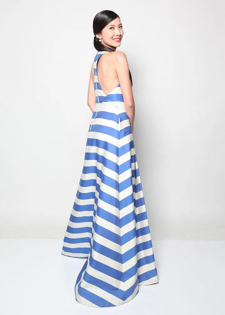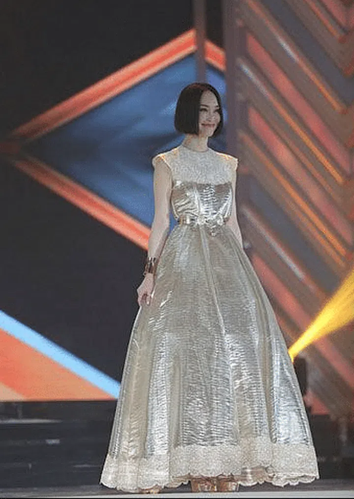 白薇秀身穿婚纱品牌Mickael D当季新作,这一袭镜面亮片拼接式高领礼服,完美勾勒出Joanne的好身材,裙边的开叉设计巧妙露出修长美腿,轻松将女人的性感与高贵集于一身。