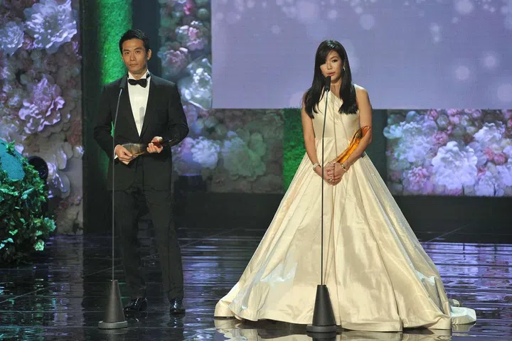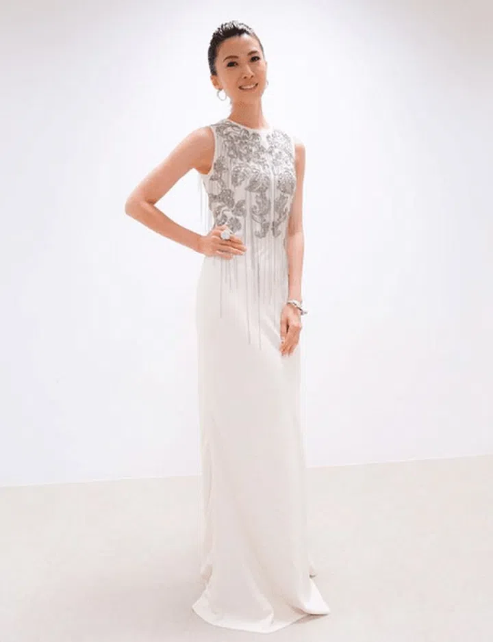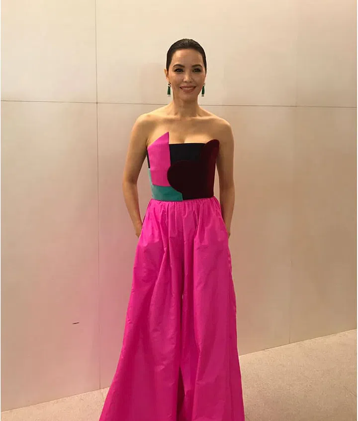 如何驾驭荧光色晚礼服?请教阿姐准没错。郑惠玉以荧光粉红Elsa Schiaparelli 2016高级定制礼服(是新加坡首位穿该品牌的女星)亮相红毯,一出场便成为焦点。阿姐佩戴的Cartier祖母绿耳坠,精致华丽,与礼服搭配得恰到好处。