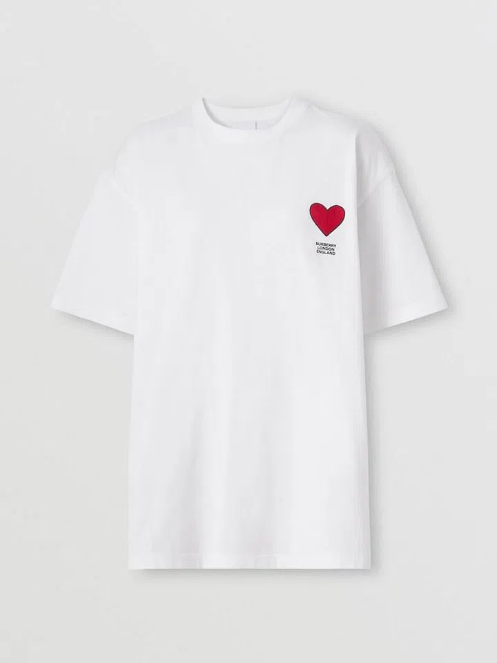 出自Burberry的七夕胶囊系列,这款白色T恤以经典版型打造,精选棉质面料制成,装饰着品牌徽标及心形图案刺绣,简约又耐看。