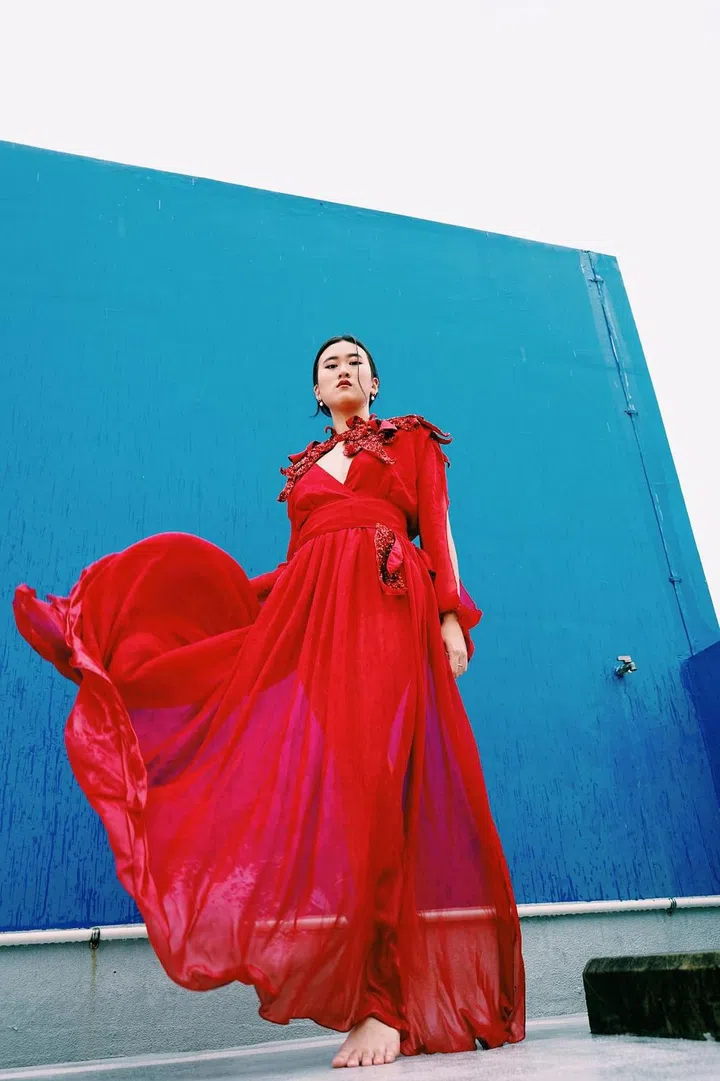 时尚品牌Lontessa由驻扎于狮城的纽西兰设计师Tessa Lont创办,这款名为Kākā 的连衣裙,灵感来自纽西兰的红色花卉 Kākā,漂亮的花卉细节可见于连衣裙的可拆卸亮片领口。裙身则采用飘逸的真丝雪纺制成,配有同款亮片热裤与腰带。